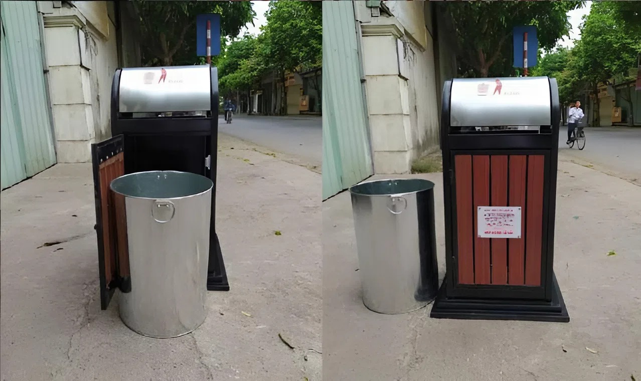 Thùng rác được làm từ thép nguyên chất có độ dày cao, đảm bảo độ chắc chắn và khả năng chịu tải tốt.